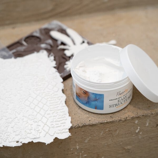 Easy Structure is een witte pasta die kan uitgesmeerd worden op alle ondergronden (behalve plastic).